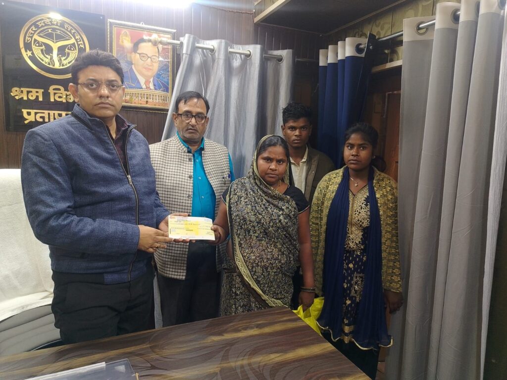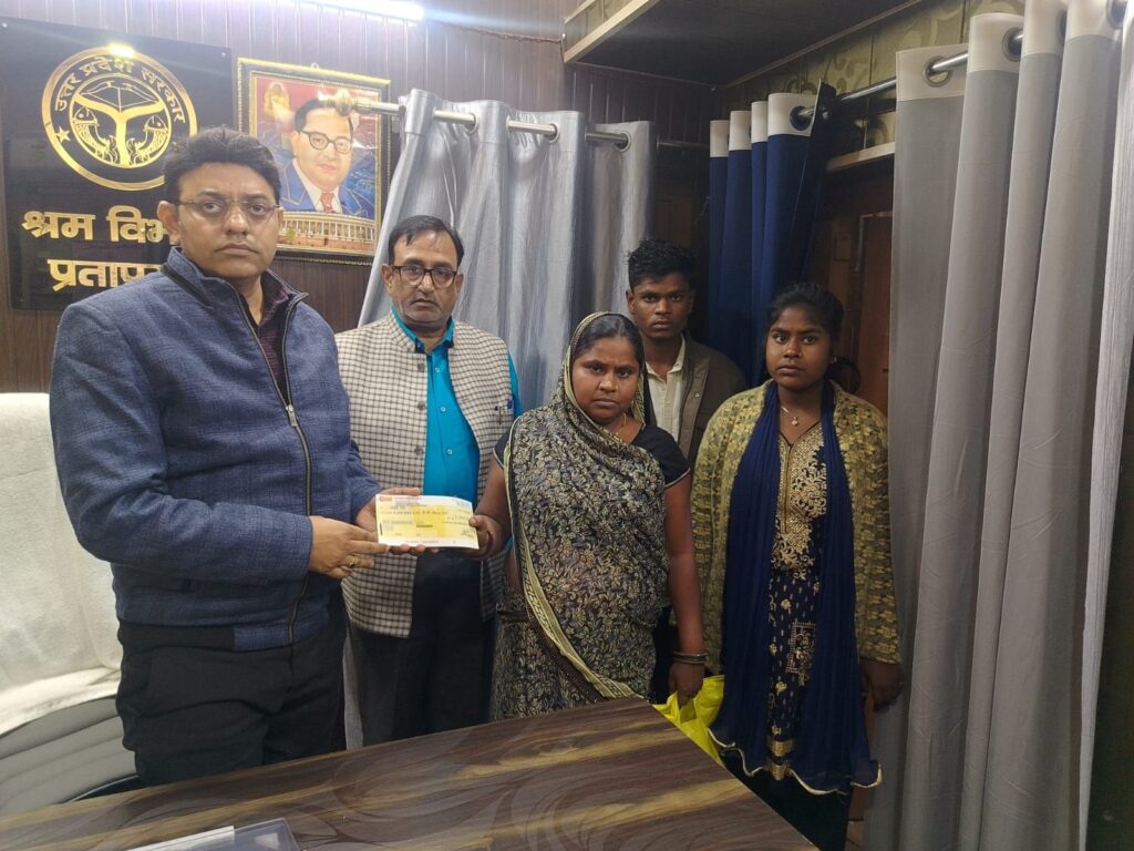 इस अवसर पर ऑल इंडिया ट्रेड यूनियन कांग्रेस के प्रांतीय सचिव एवं श्रमिक नेता श्री हेमंत नंदन ओझा उपस्थित रहे। चेक प्राप्त करने के उपरांत मृतक की पत्नी श्रीमती माधुरी देवी ने सहायक श्रम आयुक्त श्री सुविज्ञ सिंह एवं श्रमिक नेता श्री हेमंत नंदन ओझा के प्रयासों के प्रति आभार व्यक्त किया।